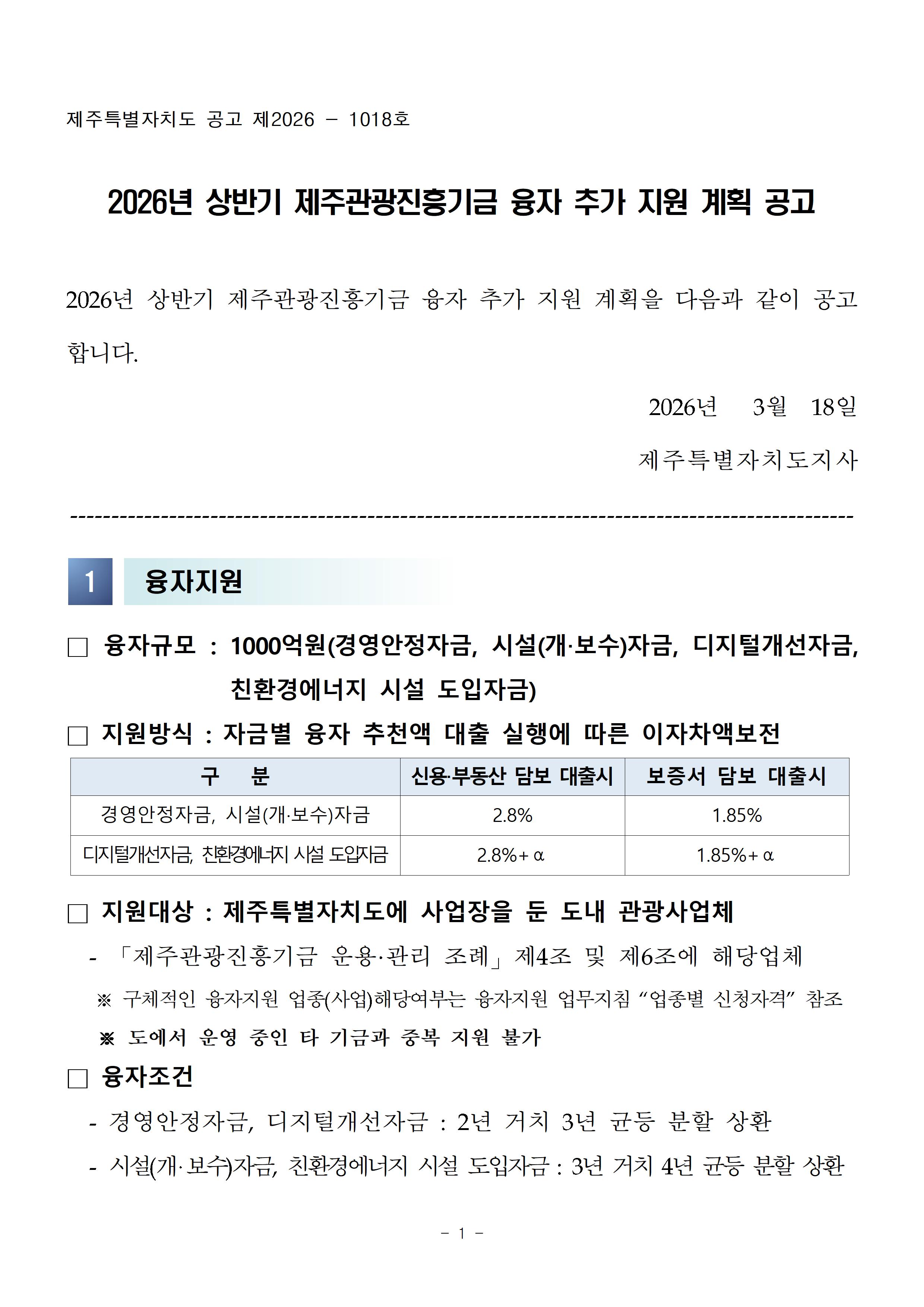 (붙임1)2026년도 상반기 제주관광진흥기금 융자 추가 지원 업무지침.hwp