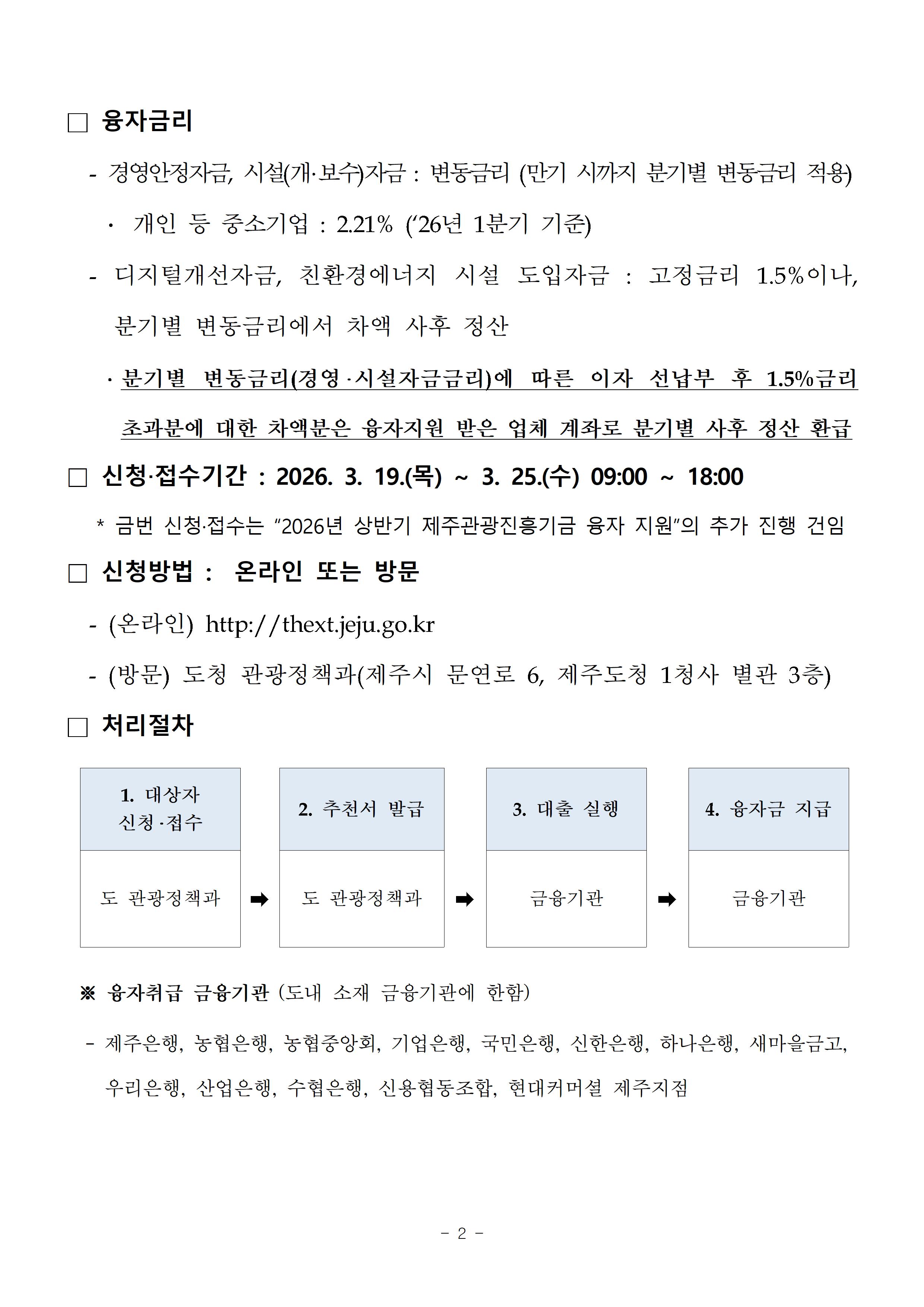 2026년 상반기 제주관광진흥기금 융자 추가 지원 계획 공고 알림