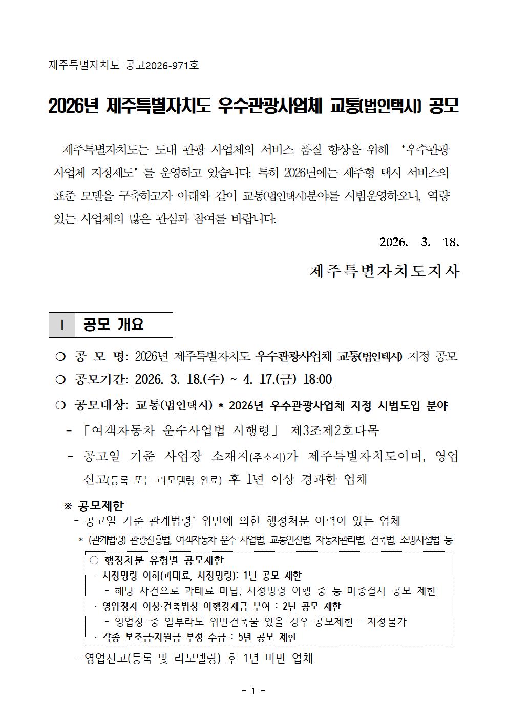 2026년 제주특별자치도 우수관광사업체 공모 공고문(법인택시).hwp