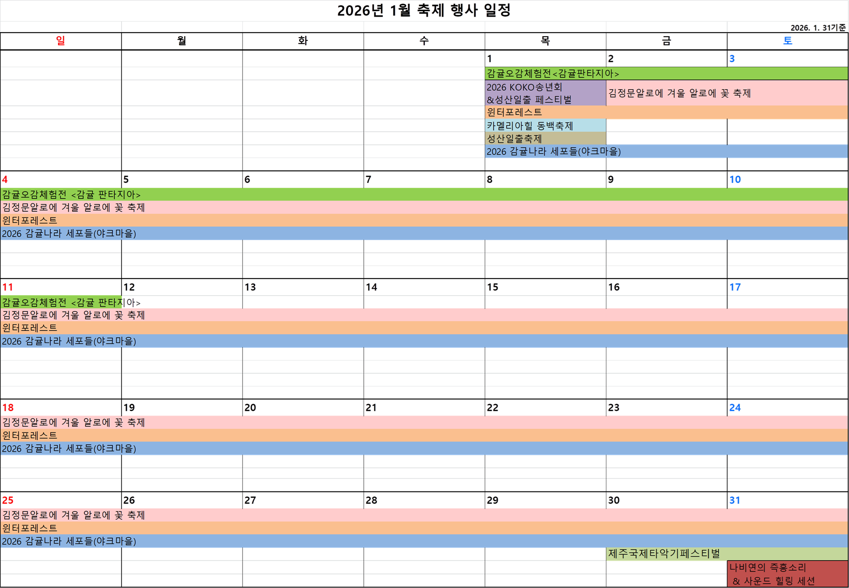2026. 1월 제주도내 주요행사(2026.1.31기준)