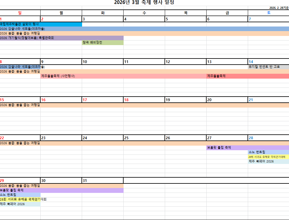 2026. 3월 제주도내 주요행사(2026.2.28기준)